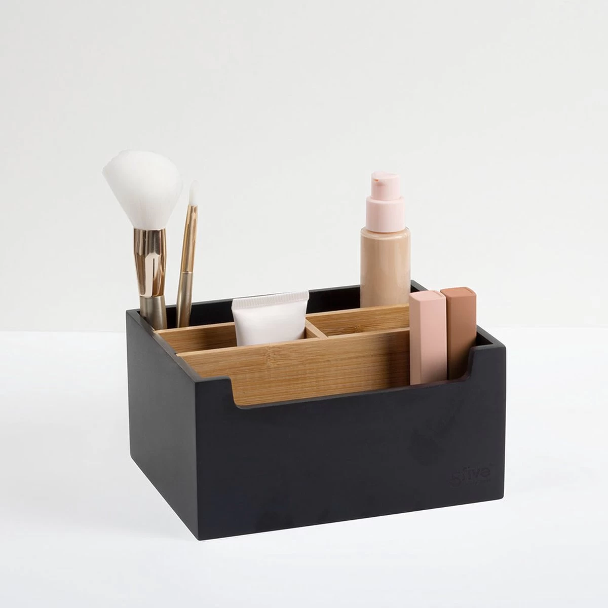 Verzorgingsproducten, medicatie en make-up heb je het liefst zo snel mogelijk bij de hand. Ben jij een echte beauty liefhebber, dan wil je misschien je collectie ook wel mooi tentoonstellen. Deze make-up organizer in het zwart van Five®, biedt opbergruimte én door de open vakken is er plek om je cosmetica te laten zien. Berg kwasten, foundation flesjes en mascara flacons in de kleinere sorteervakken op, terwijl de grotere vakken geschikt zijn voor crèmepjes en zalfjes. Kies je de make-up display met de lade? Daarin passen perfect je lievelingssieraden of dagelijkse medicatie.