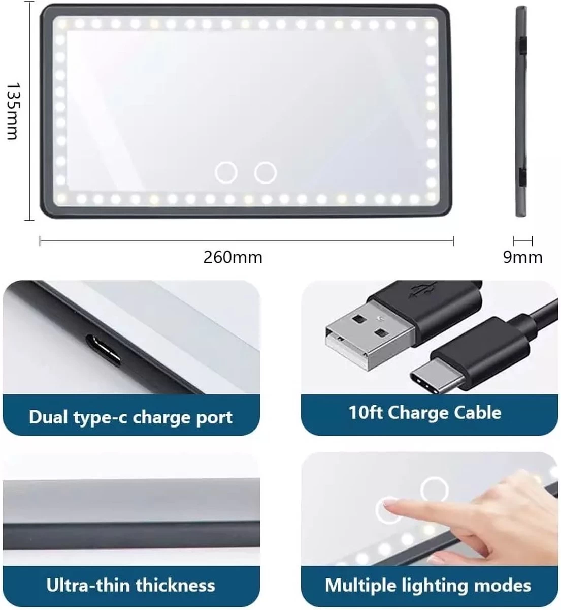 - Make-upspiegel: 60 verstelbare LED-lampjes, kunnen de donkerste en meest slecht verlichte gebieden verlichten. Schakel eenvoudig warm licht en koud licht.