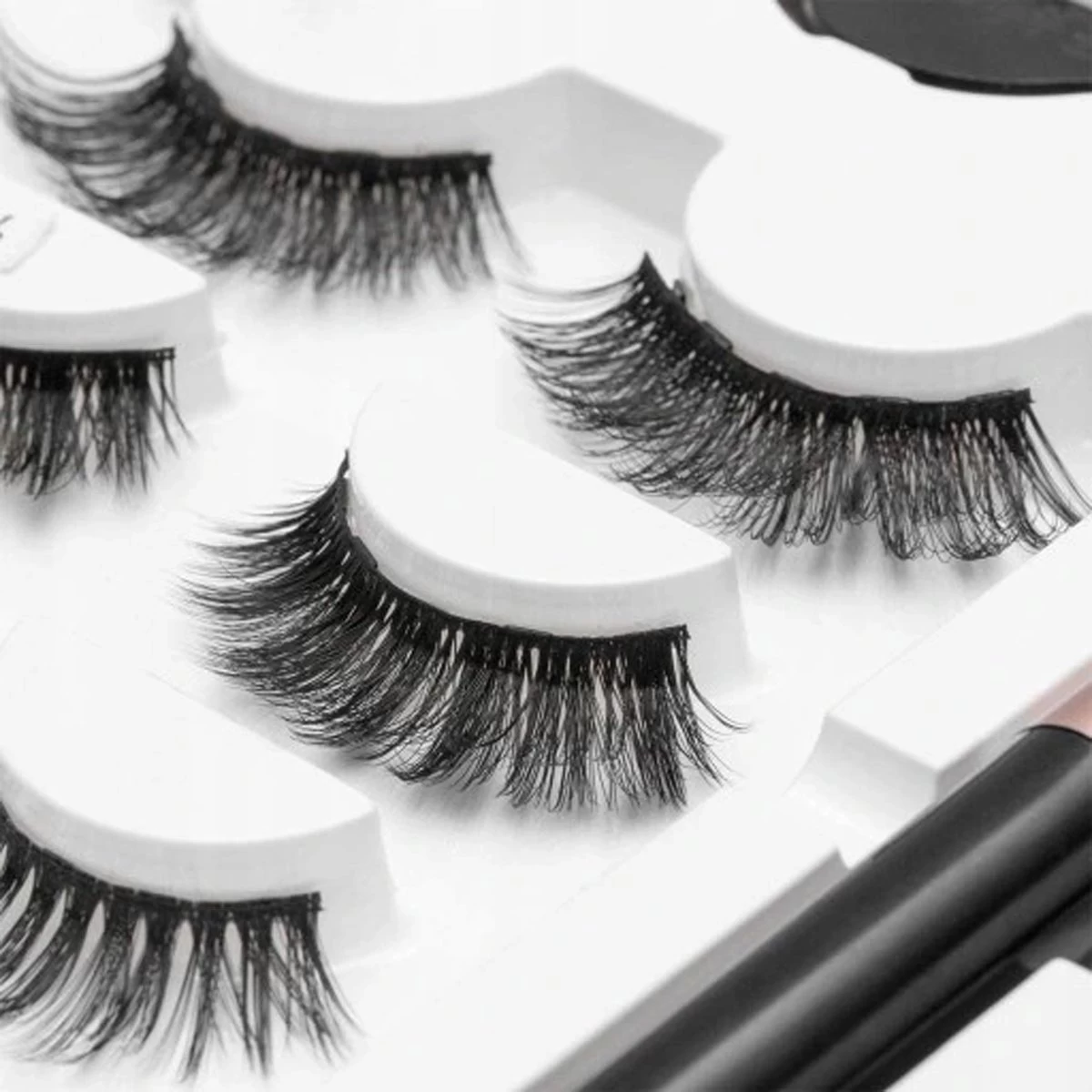 De wimpers zijn gemaakt van hoogwaardige kunstzijde , wat een heel zacht en natuurlijk effect geeft in vergelijking met andere modellen. Elke strook wimpers is voorzien van 5 sterke magneten , waardoor je in combinatie met een magnetische eyeliner een extreem duurzaam effect krijgt dat je oog niet belast !
