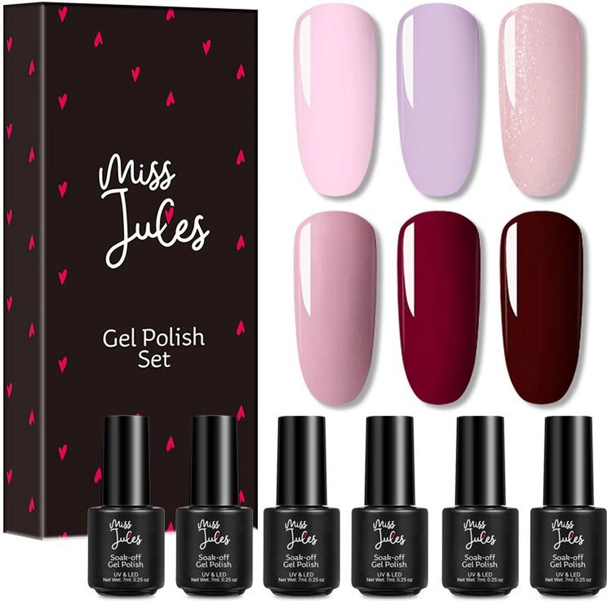 Met deze 6-delige gel nagellak set van Miss Jules heb je keuze uit 6 trendy kleuren voor elke gelegenheid. Deze gellak kan zowel op een natuurlijke nagel als op een kunstnagel worden aangebracht.