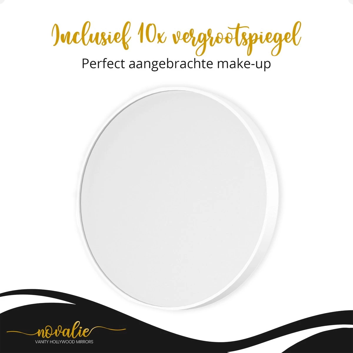 - Glasheldere HD-spiegel: Wist je dat de Novalie Hollywood Mirror glashelder is? Hoe vervelend, wanneer je in een mini spiegeltje even gauw tussendoor je make-up moet doen, al helemaal wanneer je maar beperkt gebruik kunt maken van de spiegel in de badkamer. Gun jezelf de tijd en ruimte om jezelf te verzorgen. Zo kun je elke dag met een glimlach naar buiten.