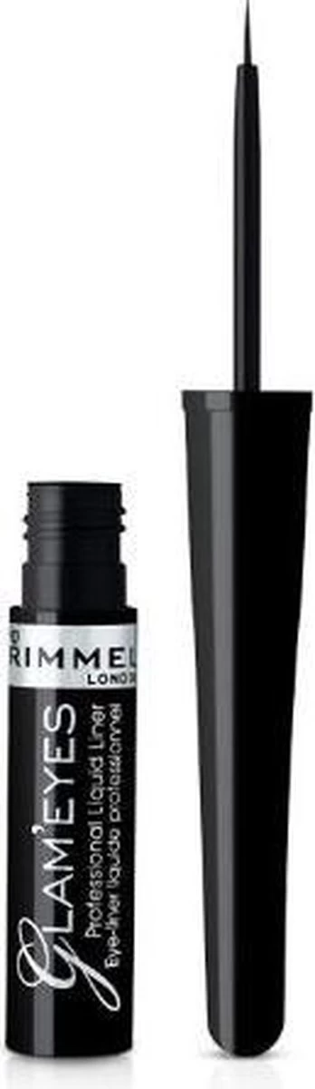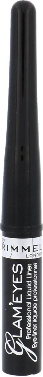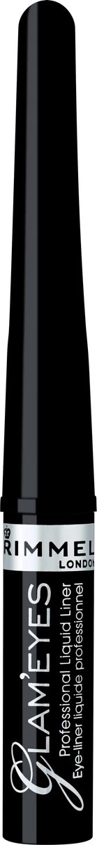 Rimmel London Glam’Eyes Professional Liquid Eyeliner, deze zwarte glam eyes liquid vloeibare make up eyeliner van Rimmel London is handig aan te brengen door de fijne punt van de eyeliner pencil. In een beweging heb je een perfecte lijn op de ogen. De eyeliner blijft lang zitten en hoef je dus bijna niet bij te werken gedurende de dag of avond.