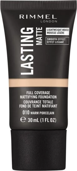 Een non-stop matte finish dankzij Lasting Matte Foundation van Rimmel! Deze lichte, zeer comfortabel aanvoelende foundation reguleert het glimmen van de huid en geeft een echt matterende teint zonder dat je gezicht strak aanvoelt of er ‘cakey’ uitziet. De Rimmel London Lasting Matte Foundation dekt volledig, verbergt direct imperfecties en heeft een mousse formule die transformeert tot een poeder finish. Daarnaast word je tot wel 12 uur lang verzekerd van een gehydrateerde en gebalanceerde huid en zie je er fris, glad en flawless uit!